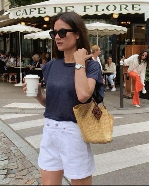 White denim. Jeans and shorts. I have a slightly cropped, straight leg pair of jeans with holes, that are bright and crisp, but not too fussy. Super versatile.